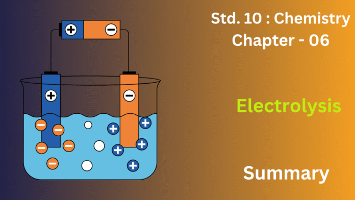Electrolysis is a chemical process where a substance (an electrolyte) is decomposed into its constituent elements by passing an electric current through it in its molten state or in an aqueous solution. It requires a battery, two electrodes (anode and cathode), and an electrolyte.