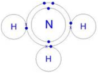 (The three lines between N and each H represent shared electron pairs, i.e., covalent bonds.)