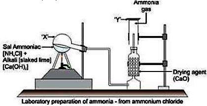Ammonia is a colorless, pungent-smelling gas, lighter than air and highly soluble in water. In the laboratory, it is prepared by heating a mixture of an ammonium salt (like Ammonium Chloride) with a strong base (like Calcium Hydroxide).