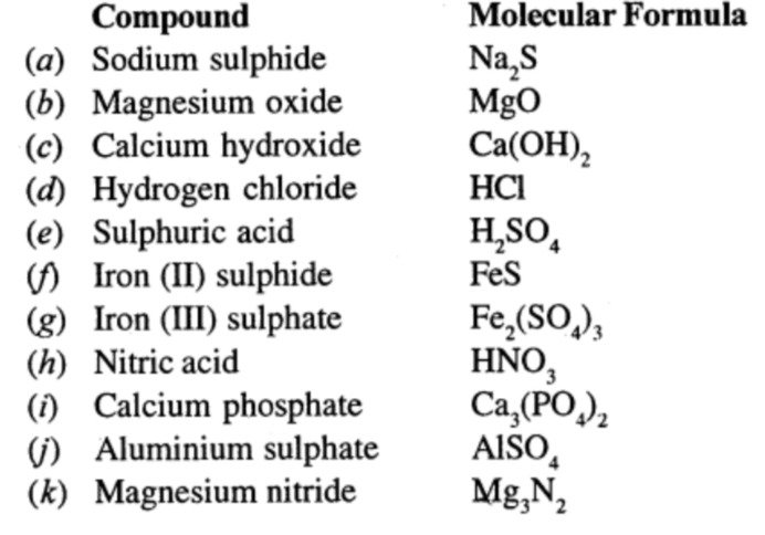 Write the molecular formulae of: