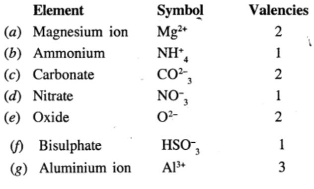 - Name one ion for each of the valencies-1, -2 and -3.