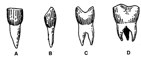 C (Premolar): The teeth after the canines, wider and ridged for “grinding.”