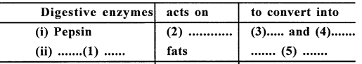 6.Fill in the blanks in the table (1-5) by selecting the suitable names of substances from the list given below: