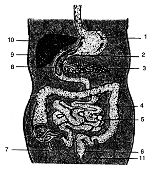 Answer :Pharynx → Oesophagus → Stomach → Small intestine → Large intestine