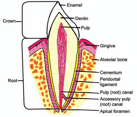 The diagram shows a cross-section of a single-rooted tooth.