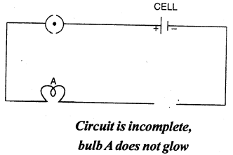 Now take out the connection of the bulb B as shown in fig. Now close the switch, you will observe that the bulb A does not glow because the circuit is now incomplete.
