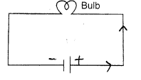 Draw a circuit diagram for a bulb connected to a cell with a switch. Mark arrow in the diagram to indicate the direction of flow of current.