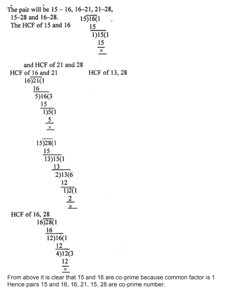 Out of 15, 16, 21 and 28, find out all the pairs of co-prime numbers.
