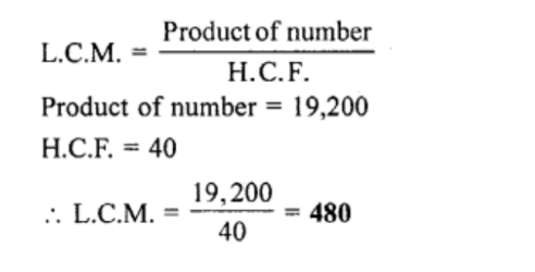 The product of two numbers is 19,200 and their H.C.F. is 40. Find their L.C.M.