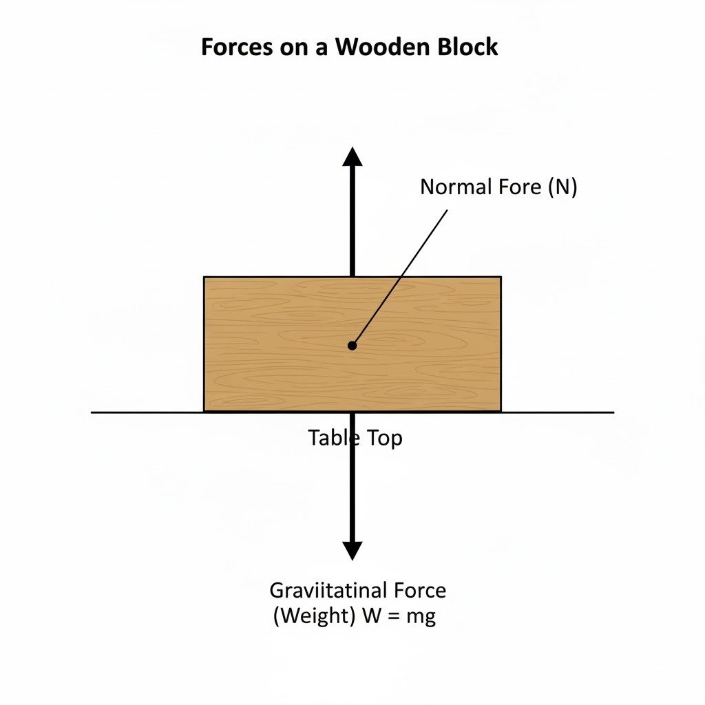 - Normal Force: The force exerted by the table top on the block, perpendicular to the surface and pushing upwards.