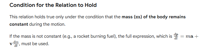 The derivation of Rate of change of momentum = mass × acceleration comes directly from applying the definition of momentum and the condition of constant mass.