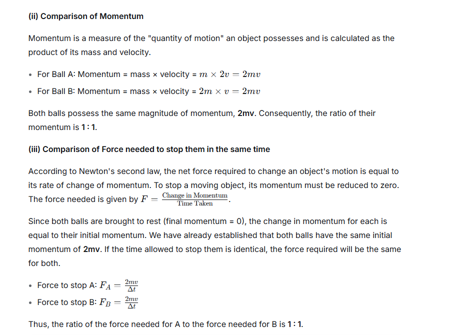 Two balls A and B of masses m and 2 m are in motion with velocities 2v and v, respectively. Compare: