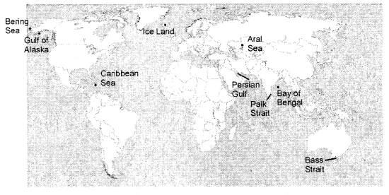 Gulf of Alaska, Caribbean Sea, palk Strait, Bay of Bengal, Bering Sea, Perisan Gulf, Bass Strait, Iceland, Aral Sea