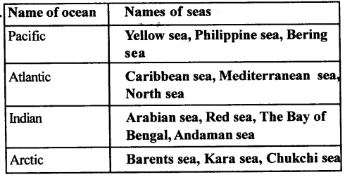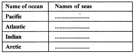 Refer to your atlas and identify some of the important seas in each ocean. Tabulate your observations as shown here and then mark and label them on a blank outline map of the world.