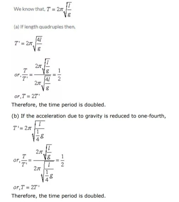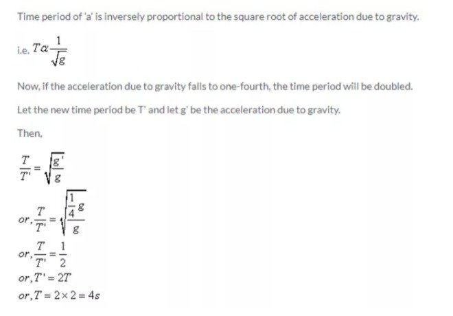 A second pendulum is taken to a place where acceleration due to the gravity falls to one-fourth. How is the time period of the pendulum affected, if at all? Give reasons. What will be its new time period?