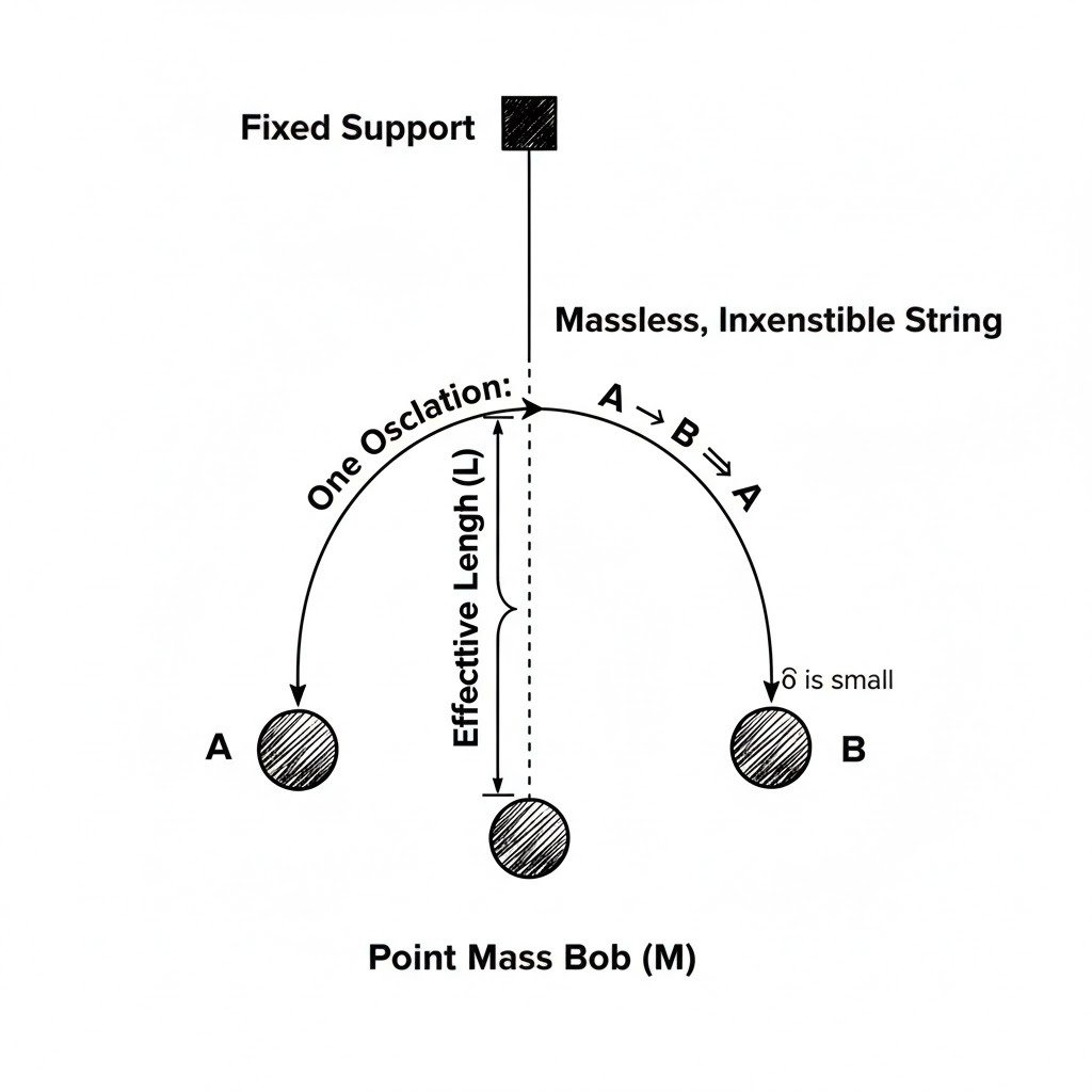 A pendulum with a time period (T) of 2 s is termed a Seconds Pendulum. This name is derived from the fact that it requires exactly one second to swing from one extreme point to the other (a half-oscillation), completing the full back-and-forth cycle in two seconds. The frequency (f) of this pendulum is the reciprocal of its time period, following the relation f=1/T. By calculation, a 2 s period yields a frequency of 0.5 Hz (1/2 s=0.5 Hz), meaning the device completes half an oscillation every second.