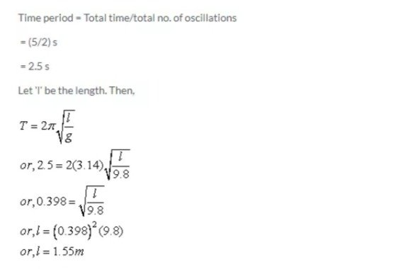 A pendulum completes 2 oscillations in 5 s. What is its time period? If g = 9.8 m s-2, find its length.