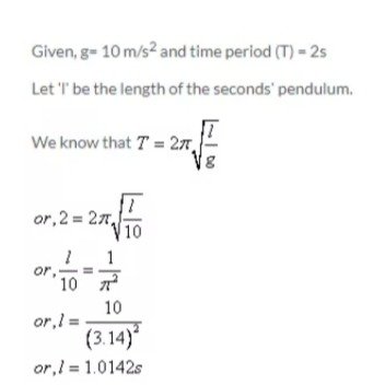 Find the length of a second’s pendulum at a place where g = 10 m s-2 (Take π = 3.14)