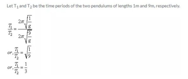 Compare the time periods of the two pendulums of lengths 1 m and 9 m.