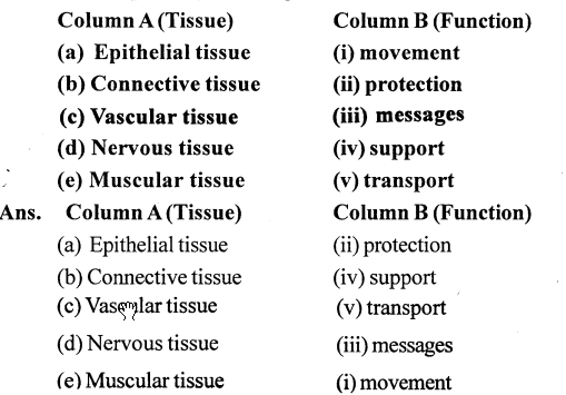 Each of the tissues listed in Column A is related to one of the functions given in Column