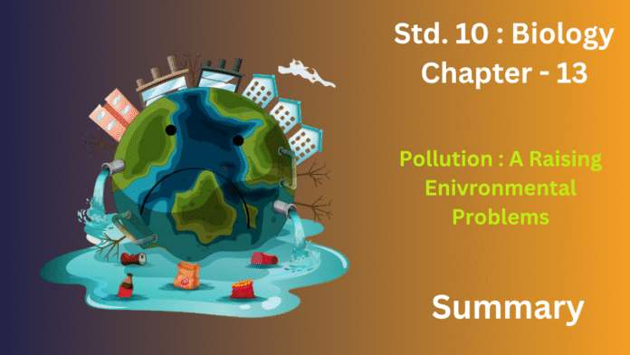 This chapter explains that pollution happens when harmful substances, called pollutants, are added to our environment, making air, water, and land dirty and dangerous for living things.