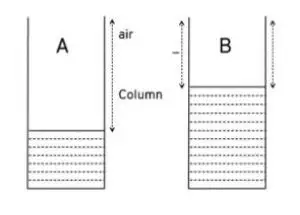 20.Fig. 7.20 shows two jars A and B containing water up to different heights. Which will produce sound of higher pitch when air is blown on them?