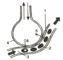 - Red Blood Cell (Erythrocyte) – Cell carrying hemoglobin within the capillary.