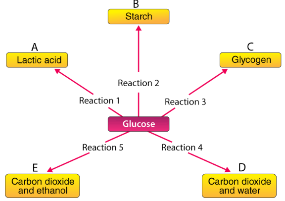 | (iii) Anaerobic respiration in yeast | Reaction 5 (Produces CO2 and ethanol) |