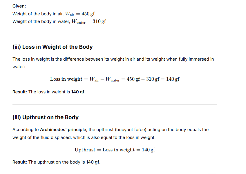 The apparent loss in weight (W₁ – W₂) is not because the water is “erasing” mass. Instead, the water is exerting an upward force on the object, which counteracts some of the downward pull of gravity. This upward force is the upthrust.
