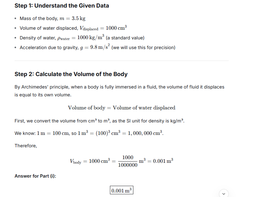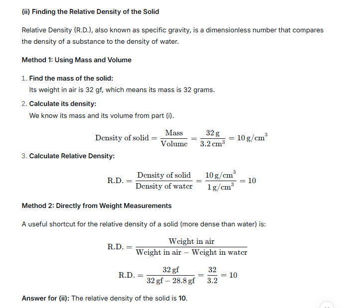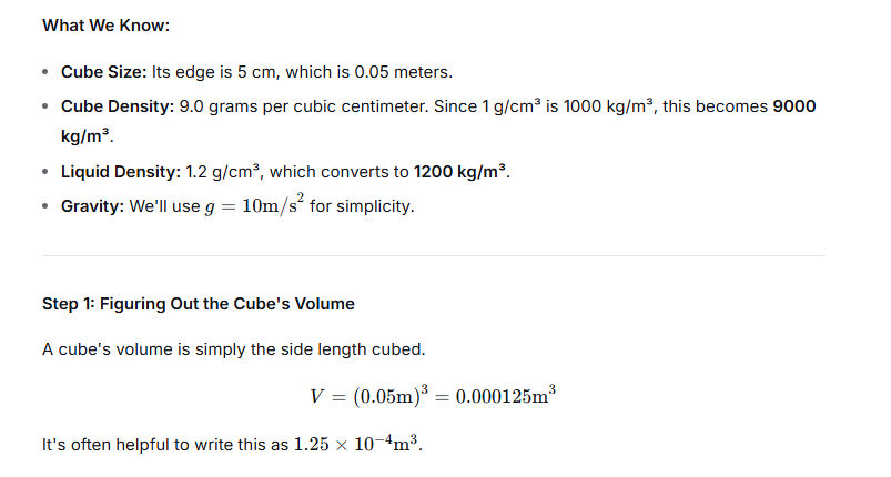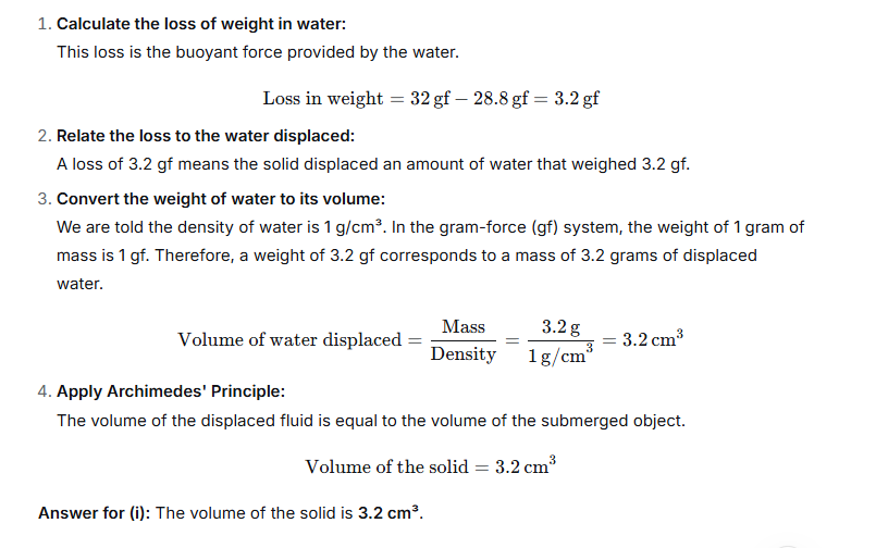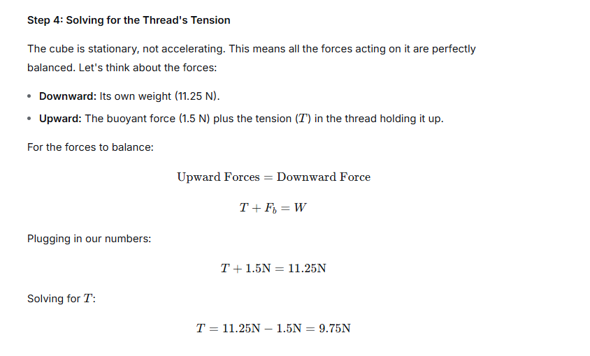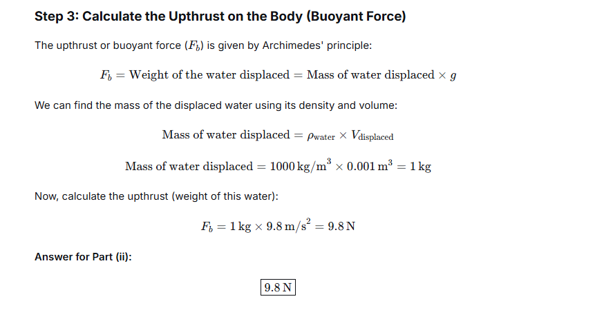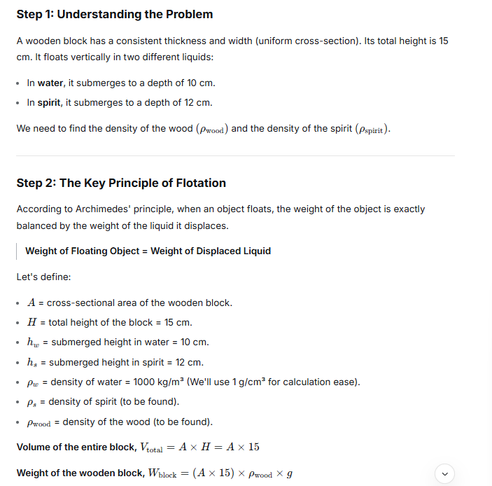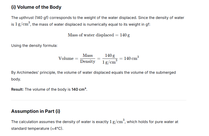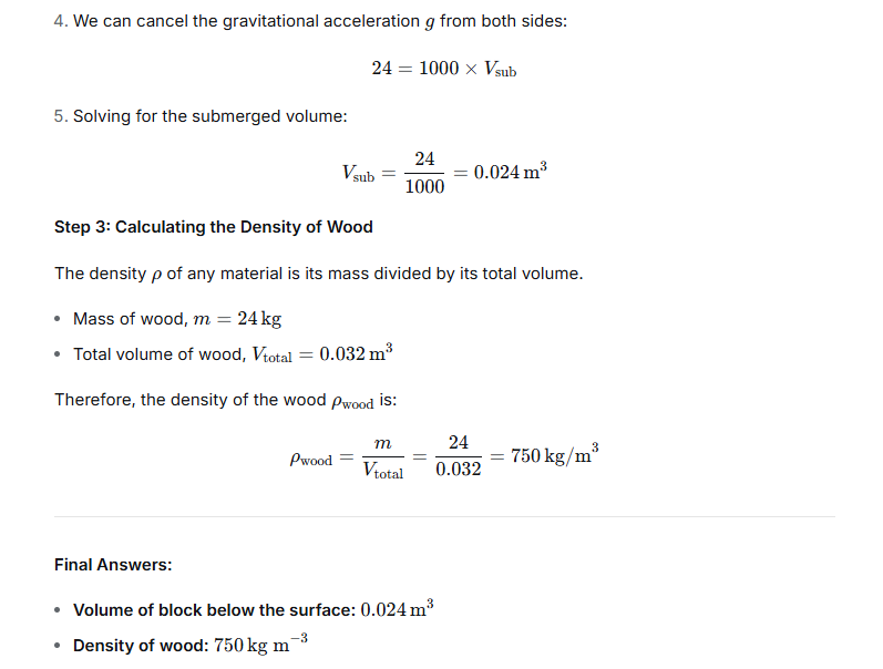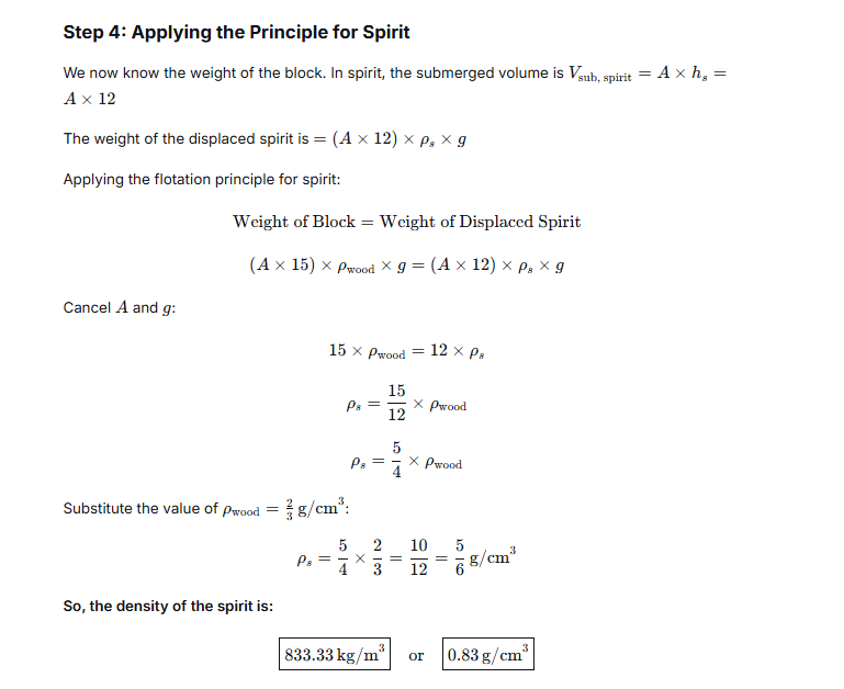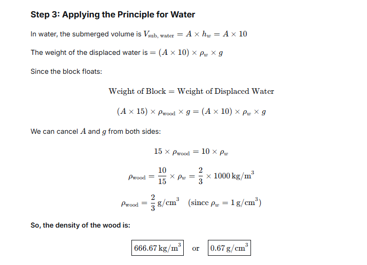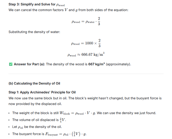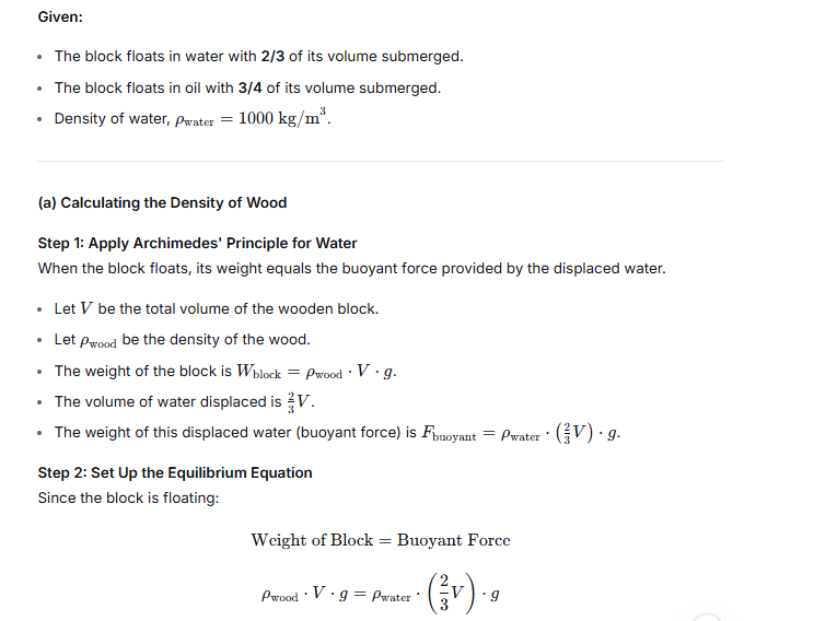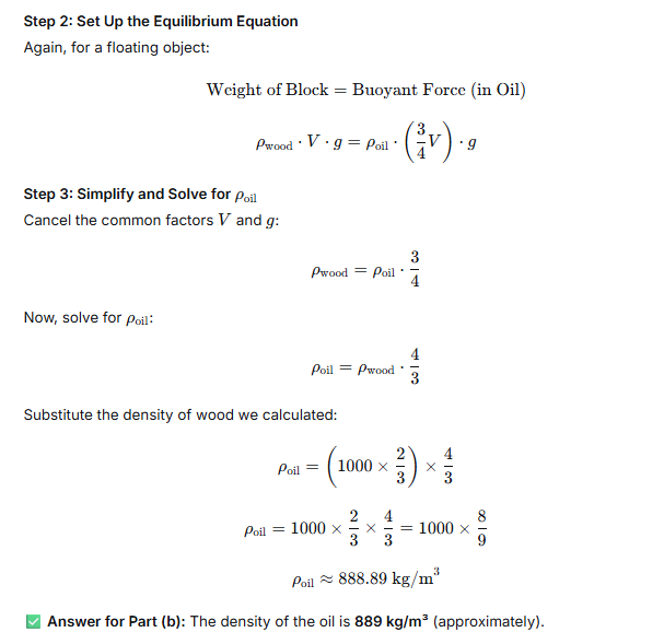 (b) When the same block is placed in oil, three-quarters of its volume is immersed in oil. Calculate the density of oil.