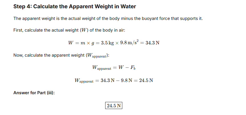 Therefore, the Buoyant Force (weight of displaced water) is: