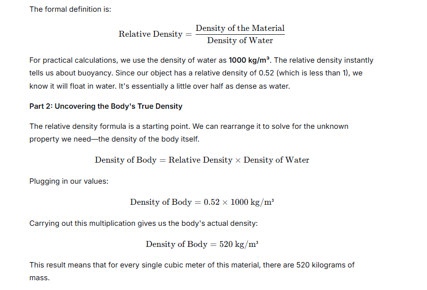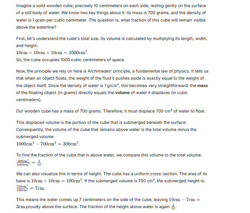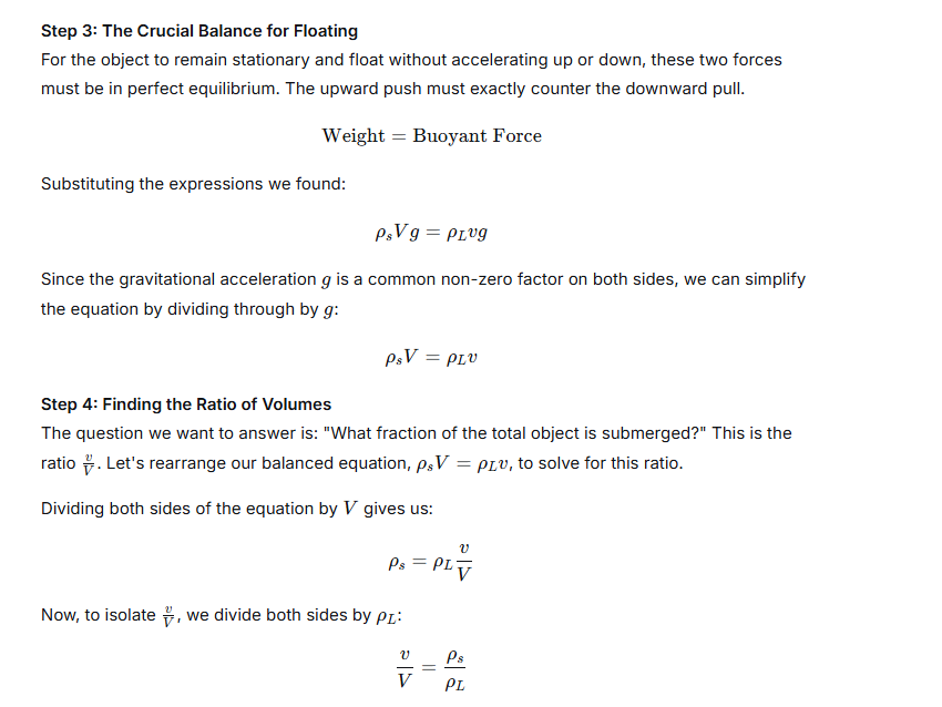 When an object floats, it pushes aside a volume of fluid whose weight is exactly equal to the object’s own weight. This is the key principle we will use.
